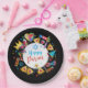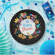 Happy Purim - Paper Plate. Translation from Hebrew: Happy Purim! Purim Jewish Holiday poster with stars of David, traditional Hamantaschen cookies, gragger toy - noisemaker, balloons, musicians, masks, Purim basket on festive confetti background. Wish a great Purim celebration. Carnival, Masquerade, Festival, Kids Party, Israel. Crafts & Party Supplies > Party Supplies > Tableware > Paper & Party Plates
