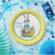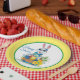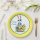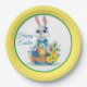 Uma Placa De Papel Amarelo Felz pascoa Adorável Com Coelhinho E Cesta Para Partidos De Páscoa.