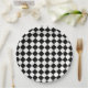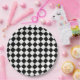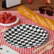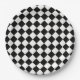 Conjunto de oito placas de papel de 9" com uma imagem de argyle preto e branco, um design popular nos anos 80. Ver pote de doces, copo espresso, frasco, lançador, bule e portas copos correspondentes. Veja toda a coleção de placas Tubular 80s na COMIDA/BEV | Seção pratos.