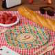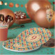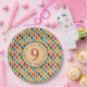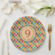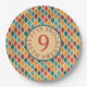 Esta placa de papel personalizável, baseada em um padrão clássico de harlequin, é para eventos de temas retrorados e aniversários. Você pode personalizar a idade e o nome no prato.