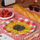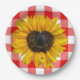 Prato De Papel Heart Sunflower Ladybug na Xadrez de Buffalo