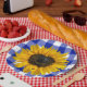 Prato De Papel Heart Sunflower Ladybug na Xadrez de Buffalo