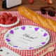 These purple hearts will add a cute touch to your special events, whether it's a birthday, anniversary, Valentine's Day, a housewarming party, or for your business. Personalize the central text and even the surrounding words. Idea: If it's a birthday, you can choose 8 words that describe the person being celebrated. The design is available in various colors. Matching napkins and cups are also available to complete your paper tableware set.