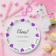 Prato De Papel Hearty Hearts Purple - Custom Text Center