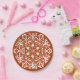 Esta mandala branca senta-se num fundo laranja de henna. A cor é escura e natural. Parte da coleção Erghen Mandala.