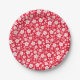 Prato De Papel Hibisco Branco sobre a Tropical Vermelha