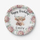 Featuring a soft watercolor highland cow with a delicate floral crown, this design includes “Happy Birthday” above and your child’s name below, making each plate feel personal and thoughtfully styled. A gentle peony border frames the plate, adding a soft blush and sage touch without overwhelming the design.