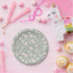 Este adorável impressão floral vintage apresenta um esquema de cor rosa pálido e verde.