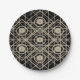 Hive Mind paper plates. Hive Mind is an abstract techno design created by Anna M. Asbury and consists of a black background with a faded khaki design.