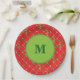 Holly Monograma Vermelho e Green Paper Plates. Adicione facilmente seu texto a esta bela placa de Feriado!