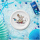 Um homem correndo com café e papel. Este design parece realmente eficaz nestas placas de papel