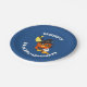 São pratos de papel bonitos para qualquer festa de Halloween, mas especialmente para crianças! Eles apresentam uma coruja laranja brilhante vestida de chapéu de bruxa e tocada em uma vassoura em frente a lua crescente amarela e morcego negro. De um lado está um pequeno fantasma branco, e uma aranha pende do chapéu da coruja. O branco curvo, acima e abaixo da imagem da coruja, diz "Feliz Dia das Bruxas". A imagem e o texto são colocados sobre um fundo azul escuro do céu. *Obrigados para a Clipart Real Deal para o cliente usado para criar este design.