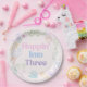 Prato De Papel Hoppin’ Into Three Birthday plates– Bunny 3rd