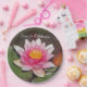 Torne a refeição de celebração ou o coquetel ainda mais especial com esses pratos de papel exclusivos e lindos "hora de celebrar". O vibrante estouro de amarelo no centro da flor é rodeado pelas vibrantes pétalas cor-de-rosa desta flor de lírio de água. Toda a flor é rodeada por folhas de lírio verde-escuras nesta foto. O texto pode ser personalizado rápida e facilmente se desejar.
