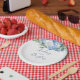 Flores brancas, hortênsia e folhagem de eucalipto - pratos de papel para casamento azul poeirento floral / festa especial de verão ao ar livre