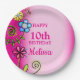 Pretty colorful flower doodles, any age birthday paper plates, change the text yourself when you order