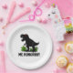 A black T-Rex with glowing red eyes bursts from bright green jungle plants, roaring loud with attitude. The “ME HUNGRRRY!” slogan captures that untamed, prehistoric hunger — bold, funny, and fierce.