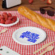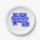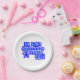 A White, 7" Round paper plate, = optional, with a Drawing/Design, in navy blue, with a lighter blue stripe, going through Letters, and numbers, and a star, = I DID it1, Graduate 2026, =(Drawing/Design by P.J.M.)