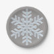 Prato De Papel Icy White Frozen Snowflake Elegante Cinza Natal