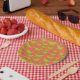 Um padrão de iguana verde giro com fundo cor de laranja. Um design adorável para quem ama animais selvagens, lagartos, répteis, natureza e padrões animais exóticos. Presente perfeito para crianças e adultos. Decoração ideal do chá de fraldas, presente para um aniversário, para o Natal ou qualquer outra ocasião especial.