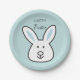 Prato De Papel Ilustração de Coelho da Páscoa Azul Pastel