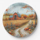 Prato De Papel Ilustração do outono da Rustic Red Barn