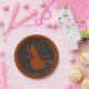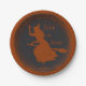 Prato de papel personalizado para festa de halloween. Ilustração vetorial com silhueta grunge de bruxa voando em uma vassoura. Texto "Festa de Halloween" e "Trick or Treat". Adicione seu nome e data.