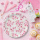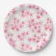 Esta placa de papel é mostrada em uma impressão adorável de flores cor-de-rosa.