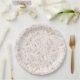 Este prato de papel é mostrado em uma adorável impressão de rosas brancas vintage.