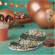 Pratos de papel elegantes com um toque moderno e um aceno ao charme vintage, perfeitos para aniversários, momentos boho de casamento, eventos com tema de zoológico, soirées sofisticadas de beleza e moda, e arrecadações de fundos ao ar livre. Misturando os motivos hipnotizantes de peles de safári e sussurros de palmeiras tropicais exóticas, sua paleta de preto antigo, marfim suave e bege desbotado pelo sol promete transformar sua mesa. Personalize com uma mensagem que diga muito, seja "Olá Trinta", "Vamos Festejar" ou qualquer frase que ressoe. Aumente a magia integrando facilmente uma foto querida. Quando esses pratos fizerem sua estreia, espere uma onda de alegria e admiração pela sala!