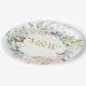 Prato De Papel Iniciais Monogramas Dourados Rosas Garland Floral