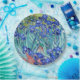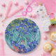 Irlandeses (1889) Vincent van Gogh. Uma bela paisagem de verão. Os irlandeses azuis florescem num leito florido num jardim verde. Reprodução de famosas imagens de arte no dominio público.