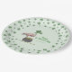 These festive Irish Shamrock Flamingo St. Patrick’s Day Party Paper Plates feature a playful pink flamingo wearing a leprechaun hat beside a pot of gold coins with a lucky green clover border and green background.