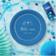 Este lindo design de chá de panela inspirado na Itália apresenta letras cursivas em estilo manuscrito acentuadas com uma borda de fita ondulada em branco sobre um fundo azul mediterrâneo. Ilustrações desenhadas à mão de macarrão gravata, vinho e um limão siciliano completam o design para um visual de verão da Costa Amalfitana. Estes elegantes pratos de papel para chá de panela mediterrâneo apresentam a frase "that's amore" em letras manuscritas com os nomes do casal abaixo.