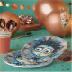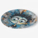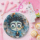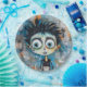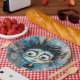 Um caráter caprichoso com olhos sobredimensionados e cabelo pontiagudo é representado por uma expressão atordoada sentada numa mesa com uma xícara de vapor e uma torradeira esquisita. Por trás do personagem, o fundo é vivo, repleto de vários esboços e rabiscos que dão uma vibração divertida e caótica à cena.