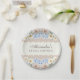 Add a touch of elegance to your celebration with these personalized, Peony Blue Hydrangea Bridal Shower paper plates. Featuring a romantic arrangement of soft blue and white hydrangeas, paired with dusty pink and white peonies, this design will create a beautiful, feminine atmosphere. The flowers are set against a vintage ivory background with delicate beige lace detail, bringing a sense of grace and sophistication to your bridal shower event. Inspired by the timeless, elegant decor and fashion of Nancy Meyers, these paper plates are perfect for a floral bridal shower that feels both classic and modern. A charming addition to your table setting, these paper plates will make your celebration both beautiful and practical.