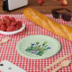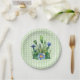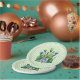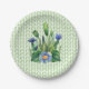 Este design apresenta uma mistura de formas gráficas e flores coloridas. O fundo é um padrão de folhas verdes. No centro da design há um conjunto de flores azuis e laranja. Este design genérico é perfeito para Páscoas, Dias de as mães, aniversários, chás de panela e tantas outras ocasiões mais festivas.