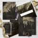 Opte por um olhar de Velho Glama de Hollywood usando as peças nesta suíte de casamento como mostrado, com joias em cascata das folhas de palma enrugadas de diamante, ou apague as camadas de joias para um olhar um pouco mais conservador. Esse conjunto apresenta em dourado cercado sobre fundo texturizado a rica cor do café preto. A placa de papel do casamento mostrada aqui tem uma borda de folhas cintilantes, uma mensagem pessoal de 'Obrigado' e os nomes da noiva e do noivo e a data do casamento. Insira facilmente seus detalhes usando o modelo fornecido. Veja o link de coleção nesta página para ver todos os itens correspondentes neste conjunto bonito ou ID830 de pesquisa para ver opções de cor adicionais para este design.