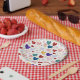 Make a statement with this rich and vibrant paper plate design. A sophisticated palette of deep navy, burgundy, plum, and goldenrod hearts creates a regal, warm atmosphere. Decorated with shimmering gold glitter dots and delicate botanical sprigs, this pattern is an excellent match for autumn weddings, sophisticated dinner parties, or milestone birthday celebrations.