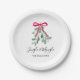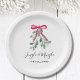 Estas placas de papel da festa de Natal são decoradas com uma maleta verde-aquarela, uma fita vermelha e uma tipografia de na moda que diz "Jingle and Mingle" Facilmente personalizável. Original Watercolor © Michele Davies.
