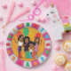 As garotas da TV JOOLS estão aqui para comemorar você! Estas placas de papel redondas apresentam Leia, Ava, Aurie & Aris, marcando uma pose em um fundo cor-de-rosa.