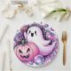 Um fantasma brincalhão e alegre admirando uma pequena abóbora!