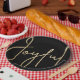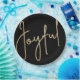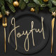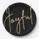 Joyful in a faux gold foil script on these black paper plates in 2 sizes, are stylish for any Christmas holiday occasion or give as a hostess gift. MATCHING items in our store.