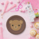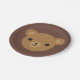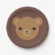 Urso castanho-branco e bonito contra um fundo castanho-escuro.