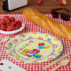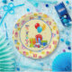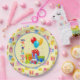 A Cute Children's Happy Birthday Paper Plate Designed With Colorful Balloons, Cake And Presents