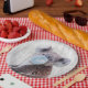 Prato De Papel Koala soprando pastilha azul com pastilha elástica