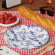 Azul e branco é clássico. Este impressão de peixe Koi é uma forma excelente de entreter convidados nos aniversários, encontros de férias e outras ocasiões especiais.