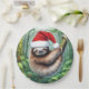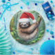 Uma preguiça vestindo um Papai Noel confortavelmente pendura de um galho no meio de uma floresta tropical exuberante