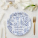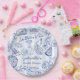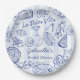 La dolce vita blue stripes hand drawn Italian bridal shower monogrammed paper plates, la dolce vita personalized paper plates, Italian bridal shower printed paper plates personalized Italian bridal shower table decor, vintage blue stripes bridal shower printed party plates