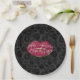 Prato De Papel Lábios vermelhos Beijo Preto Floral